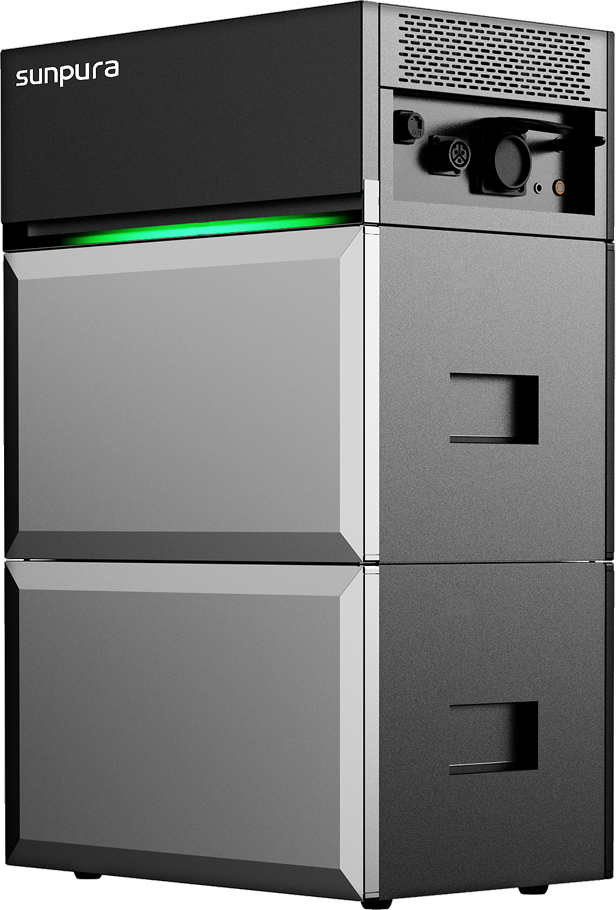 De Sunpura S2400 is een slimme, compacte thuisbatterij die speciaal is ontwikkeld voor huishoudens met zonnepanelen. Deze all-in-one accu combineert een krachtige batterij met een geïntegreerde omvormer, slimme software en plug & play-installatie. Je kiest zelf waar je hem plaatst: op het balkon, in de tuin, op een vlak dak of in een technische ruimte. Dankzij het modulaire ontwerp kun je de batterij eenvoudig stapelen tot maximaal 9,6 kWh opslagcapaciteit, afgestemd op jouw energieverbruik.